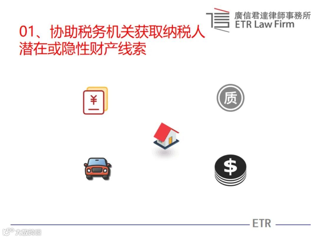 (一)协助税务机关获取纳税人潜在或隐性财产线索