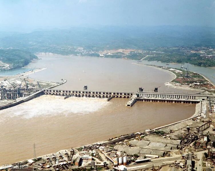 葛洲坝水利枢纽工程是万里长江上建设的第一座大坝,它是三峡工程的反调节航运梯级,属于三峡工程的一个组成部分。它位于湖北宜昌三峡出口南津关下游。长江出三峡峡谷后,水流由东骤然转南,坝址处江面宽展至2200米。河面上有葛洲坝、西坝两岛,把长江分为大江、二江和三江。葛洲坝水利枢纽工程横跨大江、葛洲坝、二江、西坝和三江,由船闸、电站厂房、泄水闸、冲沙闸及挡水建筑物组成。一、二号两座船闸可通过载重为1.2万至1.6万吨的船队。三号船闸可通过3000吨以下的客货轮。两座电站的厂房,分设在二江和大江,电站总装机容量为271.5万千瓦。挡水大坝全长2595米,最大坝高47米,水库库容约15.8亿立方米。