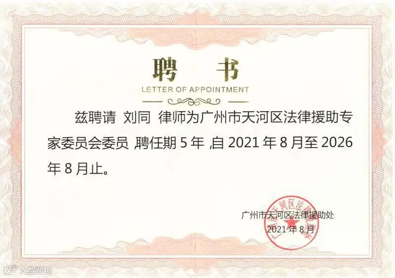 广信君达律师被聘为天河区法律援助专家委员会委员,充分展现本所律师的专业能力及社会责任感,体现有关部门对本所的信任,本所律师将以高度负责的工作态度,发挥专业优势,做好法律援助专家委员会指派的各项工作。