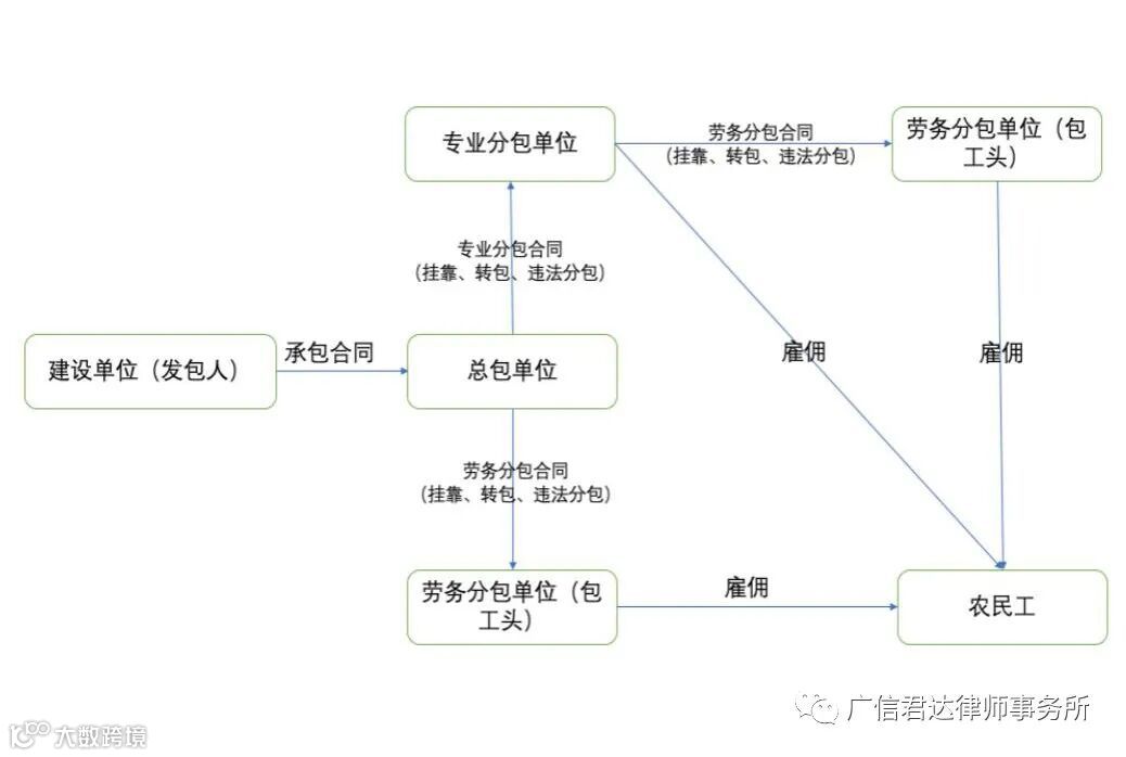 在《条例》施行前,建设工程领域习惯建设单位仅负责向总承包单位、分包单位支付工程款,此外并不关心支付工程款之后农民工如何获取工资的问题。时常发生建设单位拨付了工程款,但总承包单位或分包单位克扣农民工工资的情况。建设工程施工过程中参与的主体繁多,彼此本质上是通过合同建立联系。对于建设单位而言,本身并不涉及农民工的雇佣问题;对于总包单位而言,除因资质需要会保有固定的施工队,对于工程项目中的临时性施工项目,通常是通过劳务分包或专业转包外派解决,极少情况下会自己雇佣农民工。因此,雇佣农民工的用工单位一般为劳务分包单位、专业分包单位或因存在违法分包、转包或挂靠而产生的实际施工人。