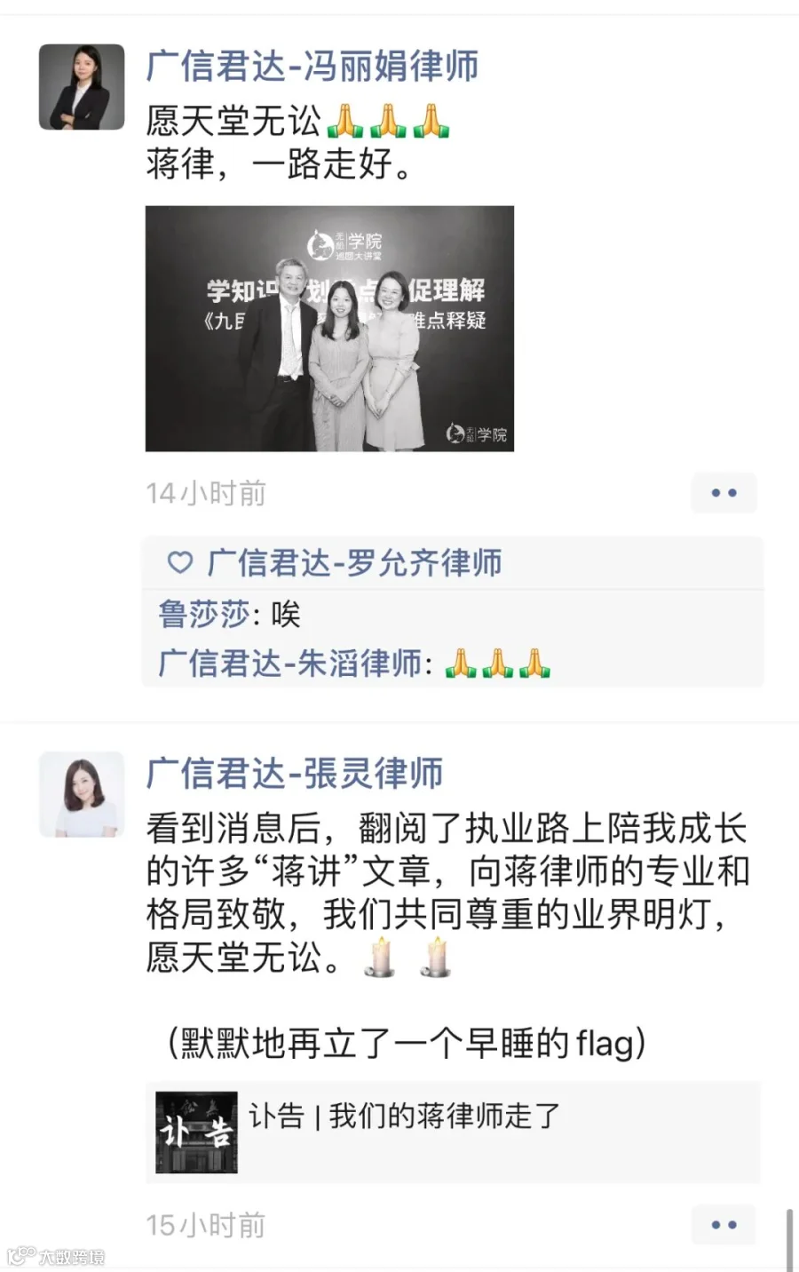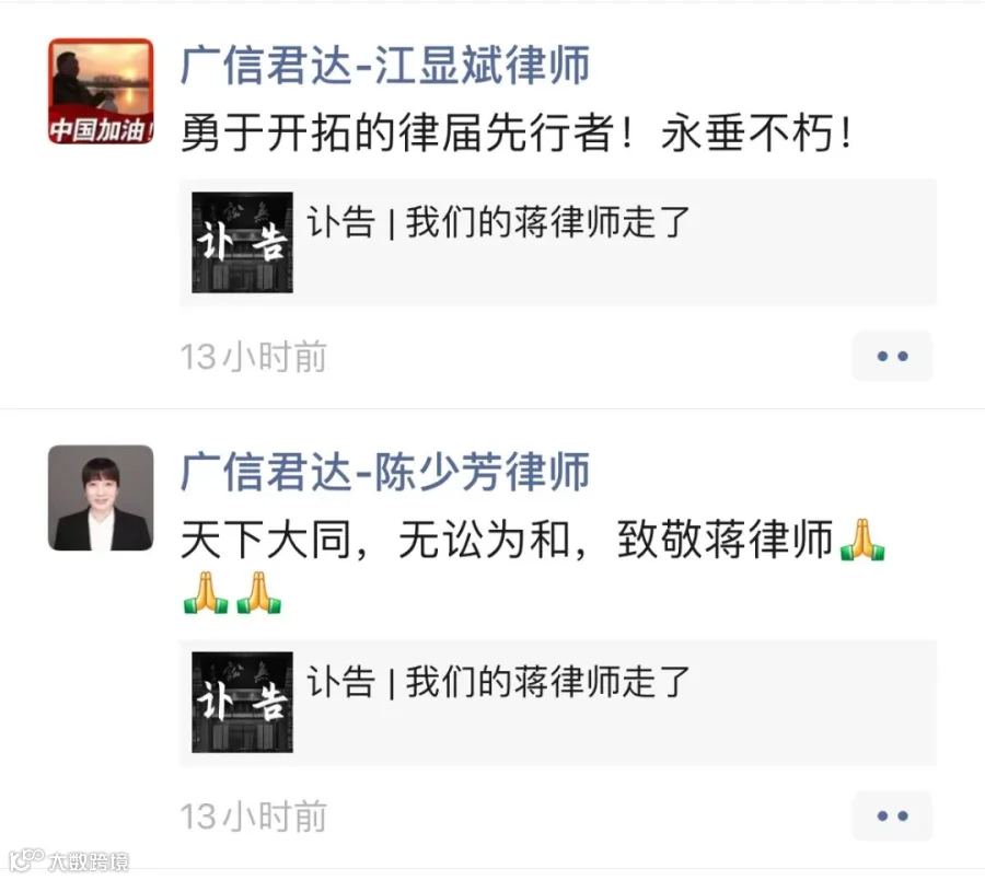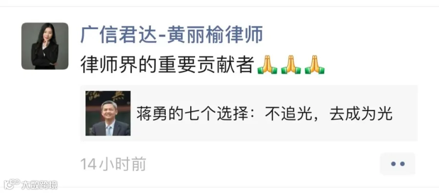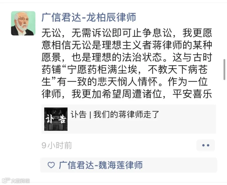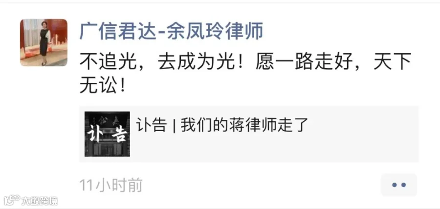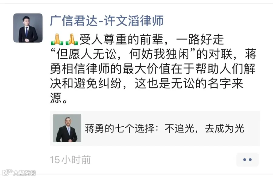 强壮之年,忽天人永隔。蒋勇律师的逝世,是律师界的巨大损失。在此向蒋勇律师致以崇高敬意和深刻缅怀,蒋勇律师千古!