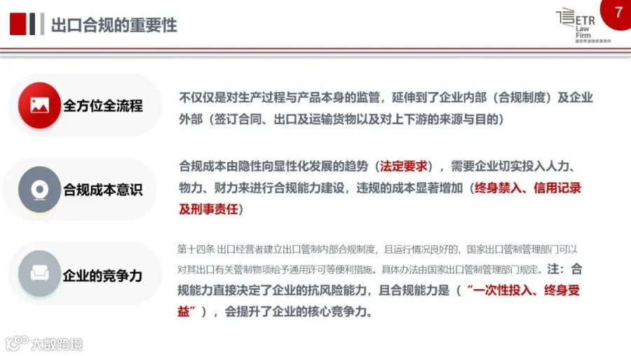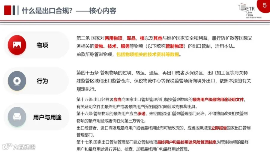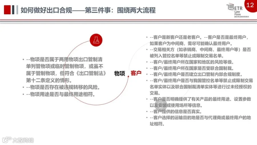 培训活动前,活动主办方通过多种形式收集了企业在合规体系建设中遇到的问题和意见建议。其中“对供应商提供进口的物料,如何确定哪些是受美国管控?如何管控供应商提供的物料是否合规?”问题,是当前企业核心关注的问题之一。对此,闪律师作出如下解答:“普通企业最需要关注的是美国商务部(BIS)发布的《出口管理条例》(EAR)。BIS管理的‘商业控制清单’(CCL)规定了每个受管控产品的‘出口管制分类编码’(ECCN)。根据某物项的ECCN可以确定其‘受控原因’,将‘受控原因’与‘商业国家图表’(CCC)进行交叉比对后,即可确定该物项出口至某国家是否需要许可申请。此外,如果实体被列入EAR及其补充案中的实体清单,未经核实清单(UVL),被拒绝实体清单(DPL),则将受到不同程度的出口限制,需要被企业格外关注。美国财政部海外资产管理办公室(OFAC)的制裁名单也需要被关注。OFAC目前制裁的国家有:伊朗、叙利亚、朝鲜、古巴、克里米亚、乌克兰、俄罗斯、委内瑞拉。OFAC还规定有特别指定国民和被隔离人员清单(list of specially designated nationals and blocked persons, SDN 清单)。被列入SDN清单的外国个人、实体所持有的资产不能以美元交易。受美国管辖的各方,将不得与SDN清单上的任何个人、实体进行交易。美国进出口管制方面的法律法规繁复,制裁手段十分严苛,所以企业需要尽快根据自身的产品、技术、市场、客户等维度建立符合自身发展规模的合规团队和合规制度,及时跟踪关注美国出口管制法的动态。”