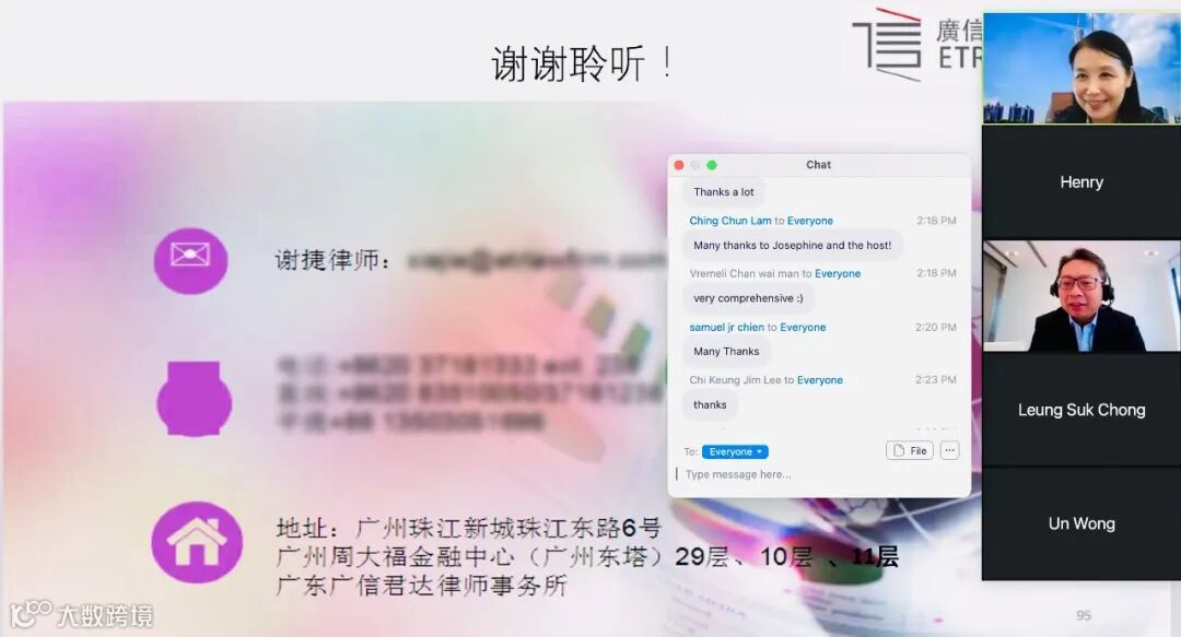 谢捷律师通过ZOOM开展线上专题讲座的截图