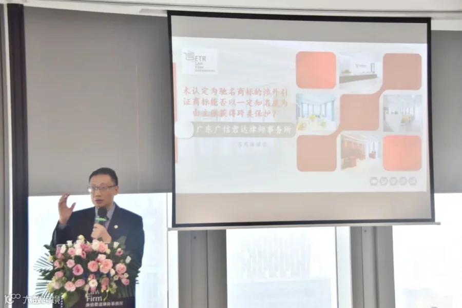 苏东海律师以“未认定为驰名商标的涉外引证商标,能否以一定知名度为由主张获跨类保护”为题,列举了承办的案例进行分析,国内某公司因诉争商标与外国公司的已获准注册的引证商标发生了权益冲突,被认为构成类似商品、服务上使用近似商标被宣告无效,国内某公司对此不服提出了行政诉讼。苏律师代理后认为外国公司的引证商标虽然具有一定的知名度但未申请驰名商标保护,以此主张跨类保护缺乏依据,对是否构成类似商品、服务的判断应当以《类似商品和服务区分表》等作为依据,而不是随意扩张,如引证商标未申请驰名商标保护的,其知名度不应当作为考虑因素,否则《类似商品区分表》则会失去作用,对驰名商标跨类保护也就失去意义。法院采纳了该观点,并最终撤销了无效宣告的裁定。