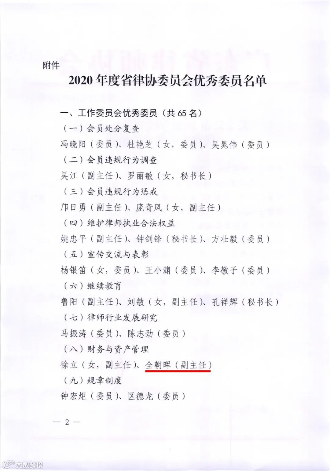 2020年度省律协委员会优秀委员