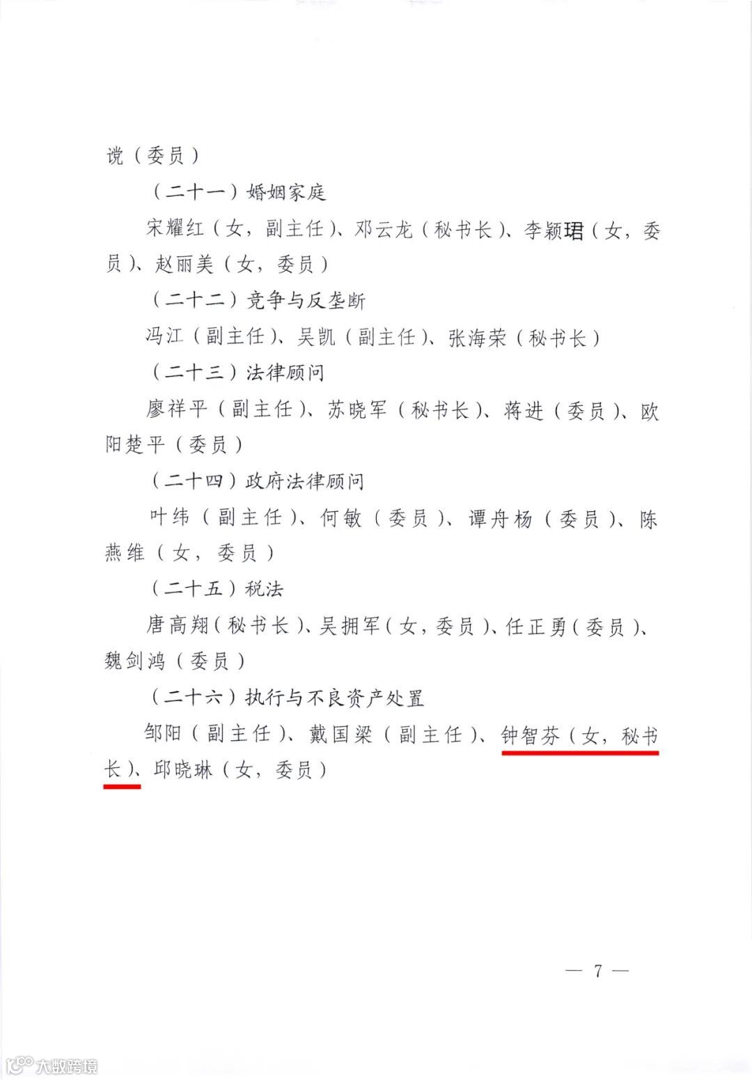 执行与不良资产处置专业委员会 钟智芬(秘书长)