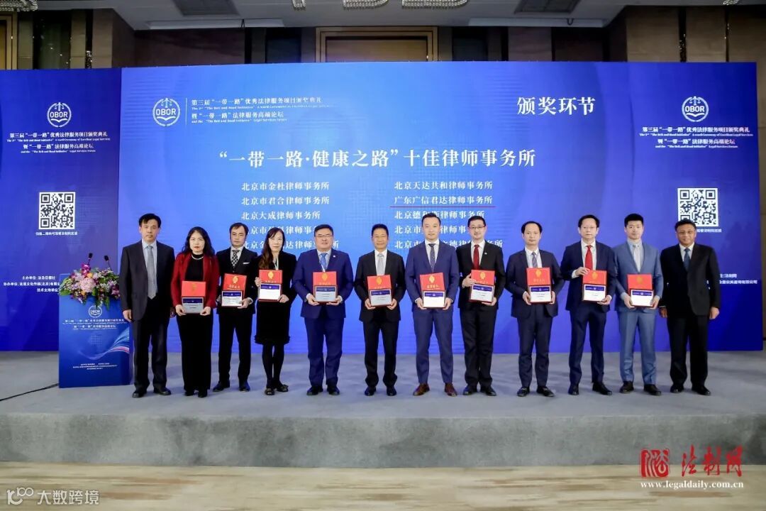 我所被评为“一带一路·健康之路”十佳律师事务所,高级合伙人律师闪涛代表事务所出席并领奖。