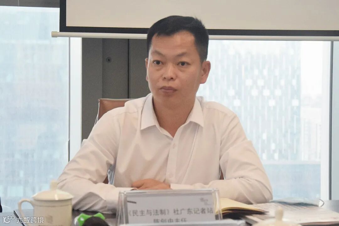 图:从左至右依次是:广州电视台法治频道主任张勇、羊城晚报时政部记者董柳、《民主与法制》社广东记者站主任陈创中