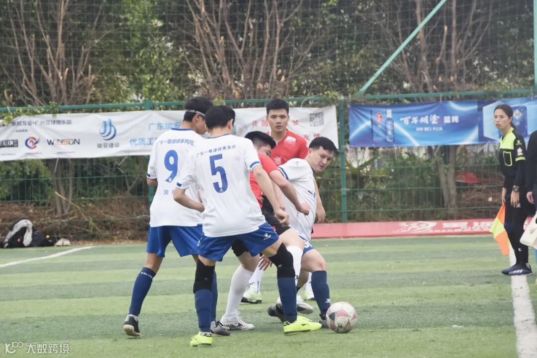 默契配合,高压拼抢。裁判一声哨响,双方球员马上进入“战时状态”,我方球员边路打出绝妙配合,频频利用速度优势,带球直穿对方防守,成功得分!开赛前10分钟,我方球员上演帽子戏法,迅速将比分扩至3:0,双方在你争我夺中结束上半场比赛。易边再战,对方球员加强进攻,制造角球,但我方球员头球抢点,门将精准扑救,对方得分未果。我方球员通过界外球,果断起脚远射破门,一记精彩入球帮助球队扩大分差。最终广信君达足球队4:0战胜对方,昂首挺进八强!