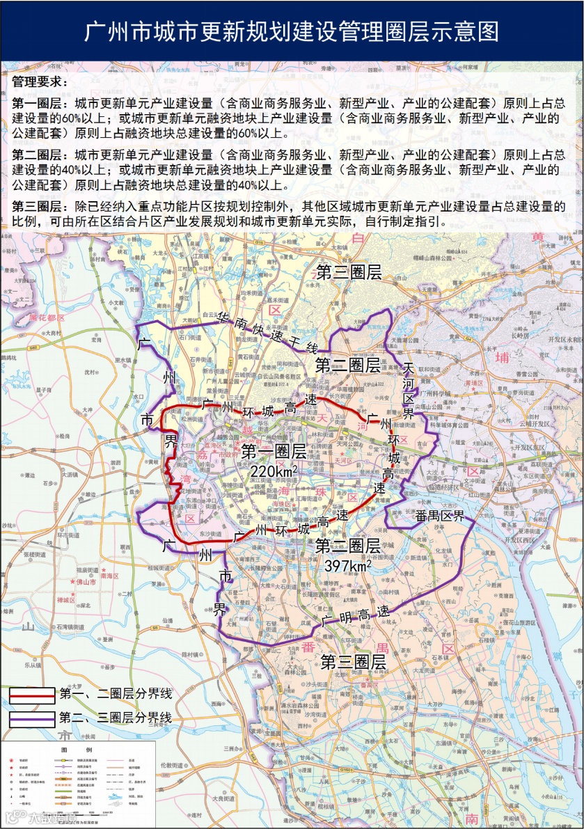(二)参考《广州市城市更新实现产城融合职住平衡的操作指引》关于全市3个城市规划建设管理圈层的划分,分别提出不同的引入产业底线要求。
