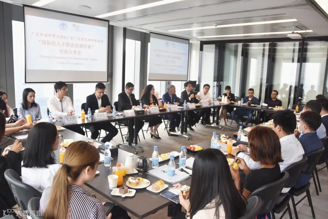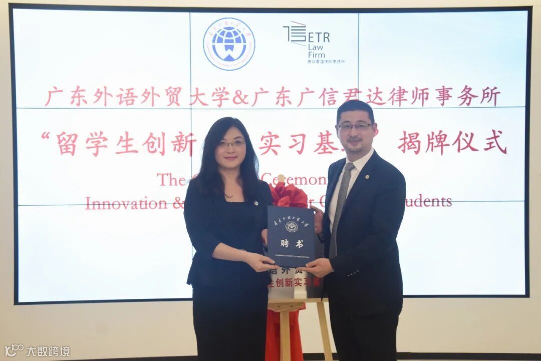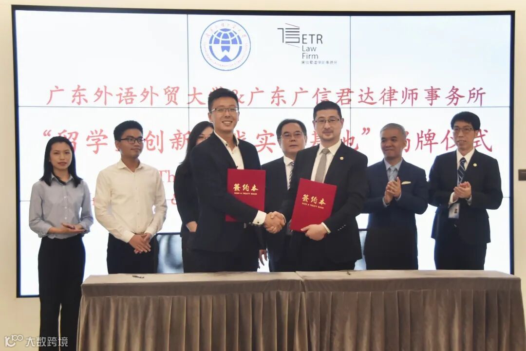 为扩大留学生实习平台,进一步推进校企交流与合作,广东外语外贸大学(简称“广外”)留学生教育学院在广信君达律师事务所设立外国留学生创新实习基地,并于2020年9月25日下午在本所举行签约揭牌仪式暨“国际化人才职业发展经验”交流分享会。广外留学生教育学院院长蔡红、学生事务主任王一仟,广信君达主任王晓华、跨境金融与投资法律研究中心主任闪涛、高级合伙人律师全朝晖、合伙人律师张由及10余位涉外律师代表和来自14个国家的20余位留学生齐聚一堂。活动由本所律师助理曹杨欣柳主持。