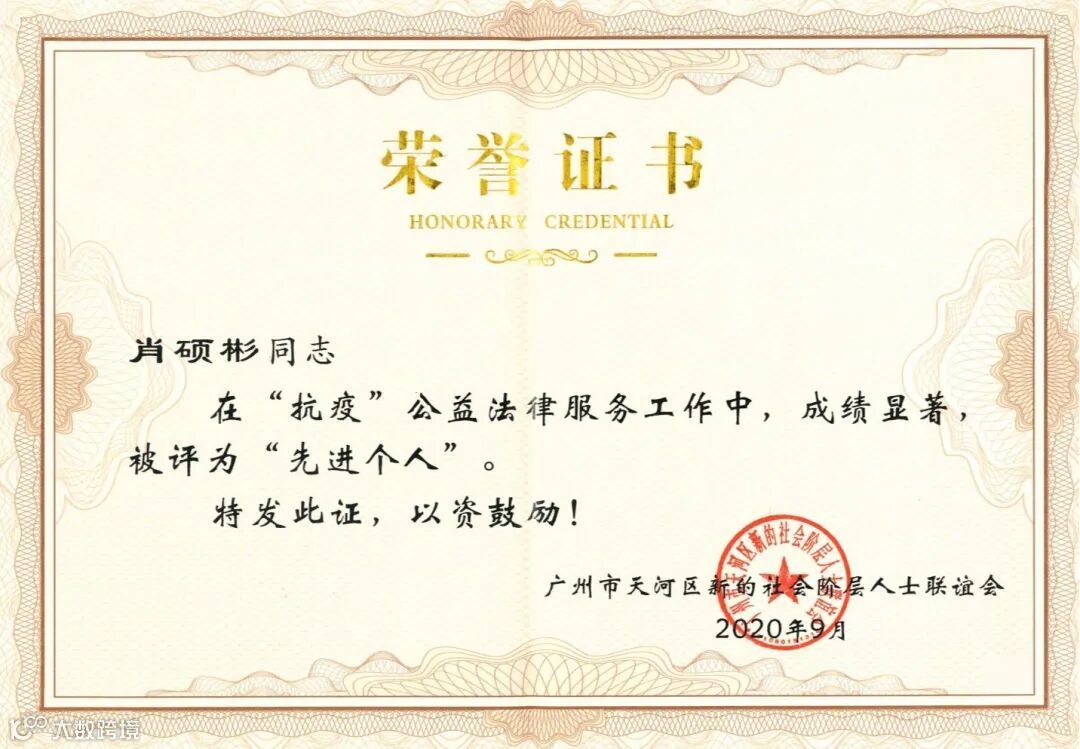 简讯 | 广信君达肖硕彬律师被评为“抗疫”公益法律服务“先进个人”