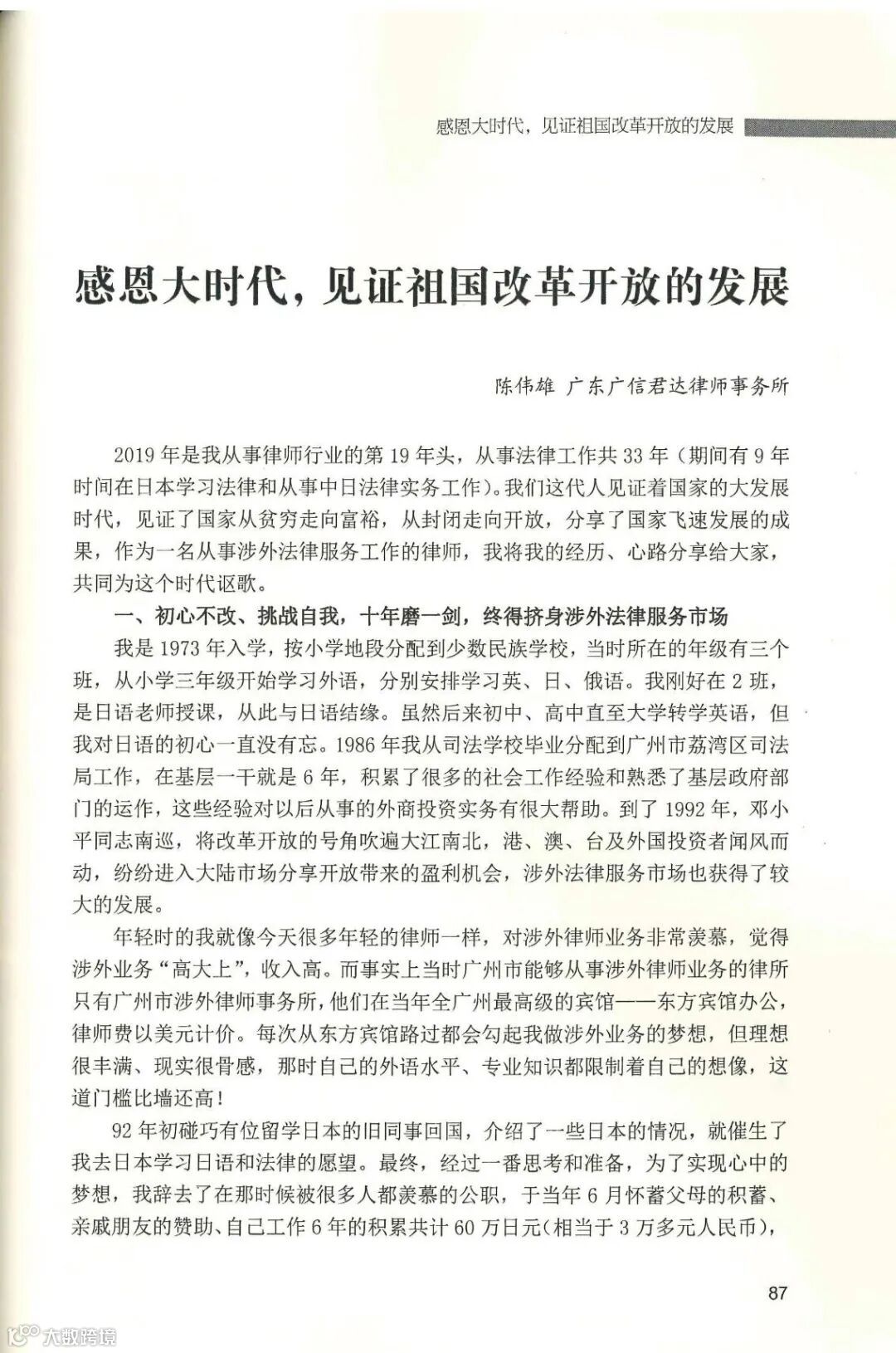广信君达律师事务所王晓华、苏东海、张成勇、陈伟雄、陈小英、杜晓佳(以入选文章顺序排序)等律师的文章分别入选文集的《见证复兴》《砥砺奋进》《时代新人》栏目。我们将在近期对我所律师入选的执业奋斗故事进行分享,与君共勉。