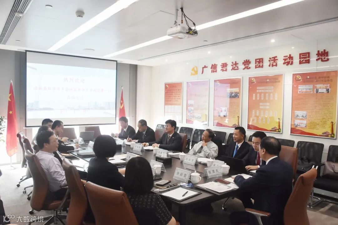 2020年11月19日下午,广东法制盛邦律师事务所(简称“法制盛邦”)党委书记张育泉,监事会现任主席郑海鹰、前任主席张锡海等率全体监事会成员一行到访广信君达律师事务所,就事务所规范化管理、专业化发展、分所建设等进行交流。本所主任王晓华、监事长刘善巧、管委会秘书长张成勇及监事刘华、赵芃、徐颖雯热情接待。