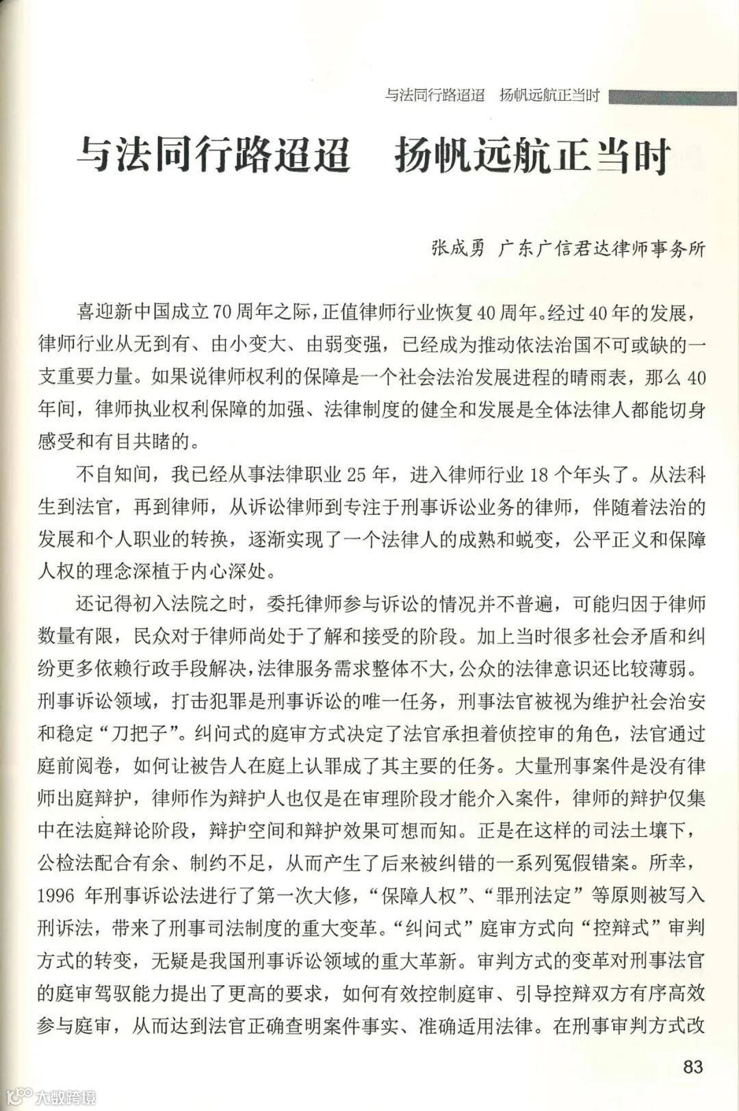 广信君达律师事务所王晓华、苏东海、张成勇、陈伟雄、陈小英、杜晓佳(以入选文章顺序排序)等律师的文章分别入选文集的《见证复兴》《砥砺奋进》《时代新人》栏目。我们将在近期对我所律师入选的执业奋斗故事进行分享,与君共勉。
