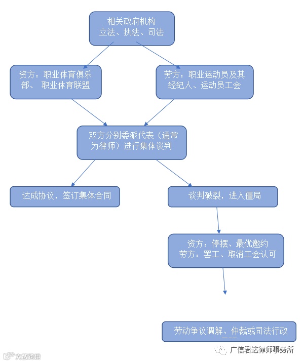 以市场化最为完善的NBA为例,其早已建立一套制度完备、机制成熟的集体谈判模式,简单图示如下:
