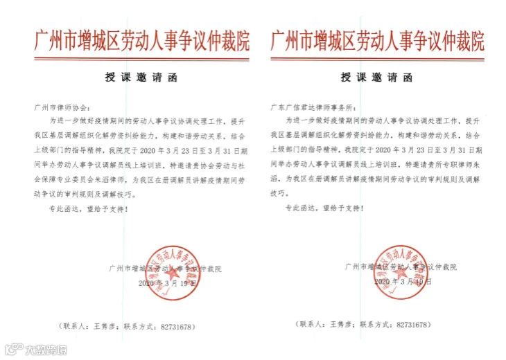 为进一步做好劳动人事争议协调处理工作,提高基层调解组织化解劳动人事争议的能力,本所朱滔律师应邀为广州市增城区劳动人事争议仲裁院开展全区劳动人事争议仲裁员、调解员线上培训班,作疫情期间劳动争议裁判规则及调解方法技巧的专题授课,300名仲裁员、调解员在线参加培训。