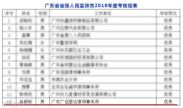 根据《广东省人民监督员考核规定(试行)》有关规定,省司法厅通过查阅检察机关对人民监督员履职情况的评估意见、人民监督员年度总结报告,调阅人民监督员履职档案信息等方式,从人民监督员的监督履职、培训学习、遵章守纪和个人操守等方面对239名省级人民监督员进行了2019年度考核。其中本所高级合伙人肖硕彬律师考核等次为“优秀”。