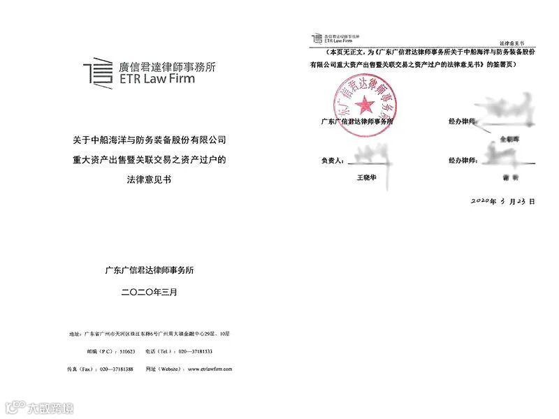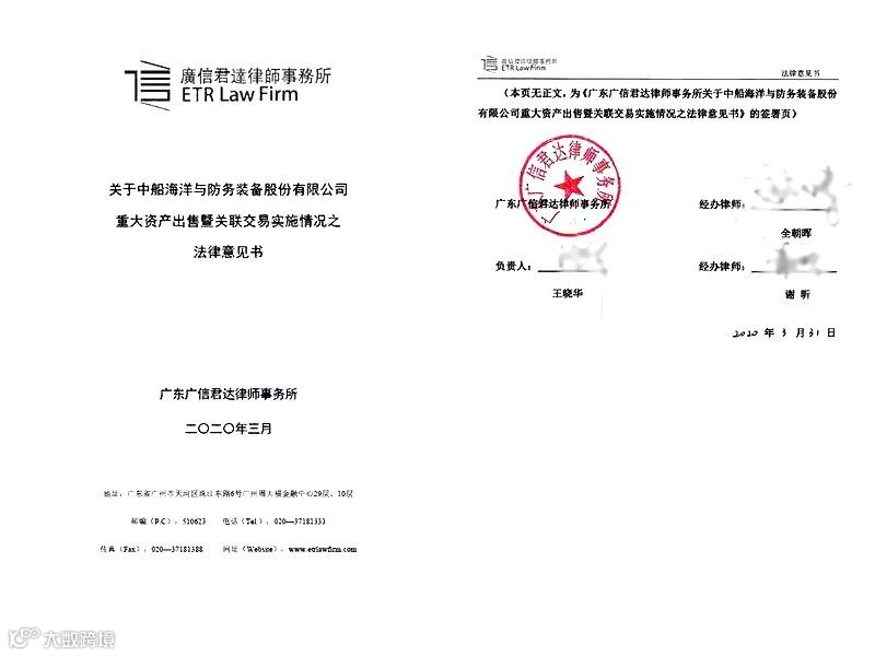广东广信君达律师事务所担任中船防务本次重大资产出售项目的专项法律顾问,本所高级合伙人全朝晖律师和谢昕律师为本项目的主办律师,本所合伙人杨尹律师,莫欣影律师和黄拓律师参与了本次重大资产重组项目处理。继此前助力中船防务顺利进行本次重大资产重组项目申报及获证监会无条件通过,本所相关律师本次继续为中船防务提供出售资产过户、重大资产重组实施的专项法律服务,进行项目有关文件的起草和修订、尽职调查、出具资产过户及重大资产出售实施专项法律意见书等工作,助力中船防务顺利实施完成本次重大资产出售项目。