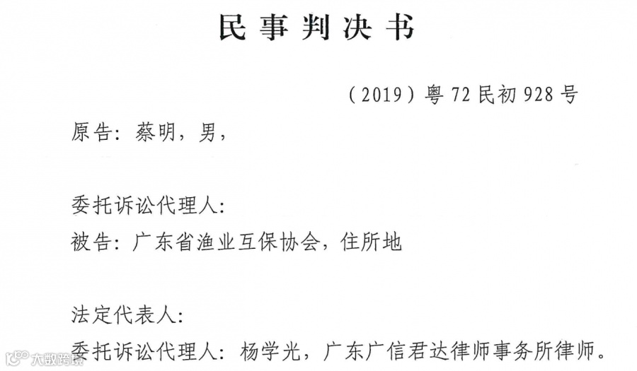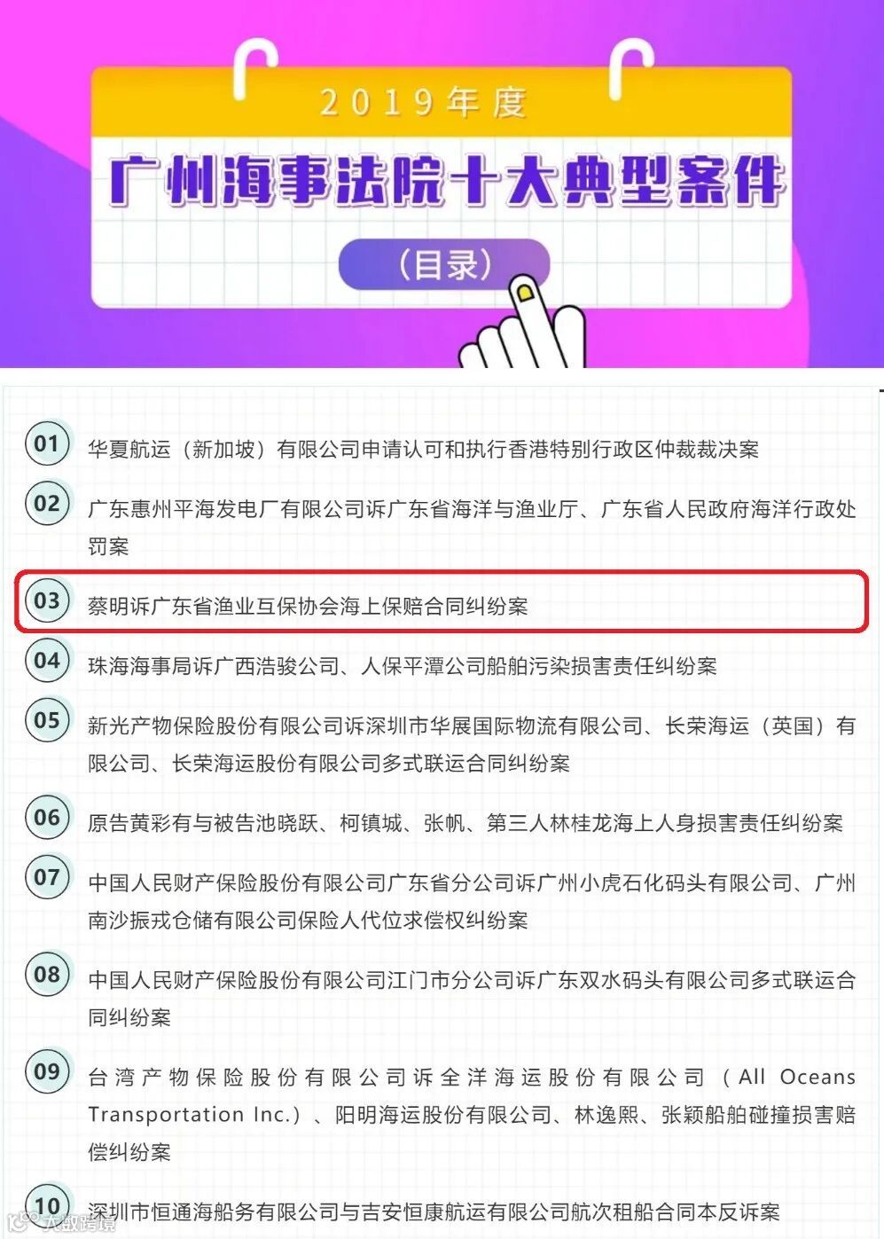 近日,广州海事法院公布了2019年度十大典型案件,广东广信君达律师事务所合伙人杨学光律师代理的胜诉案件“蔡明诉广东省渔业互保协会海上保赔合同纠纷案”成功入选。该案例先后被中国渔业互保协会、广东省渔业互保协会转载,在中国渔业保险领域引起热烈反响,对渔民人身意外伤害的保险索赔案件具有重大的借鉴意义。