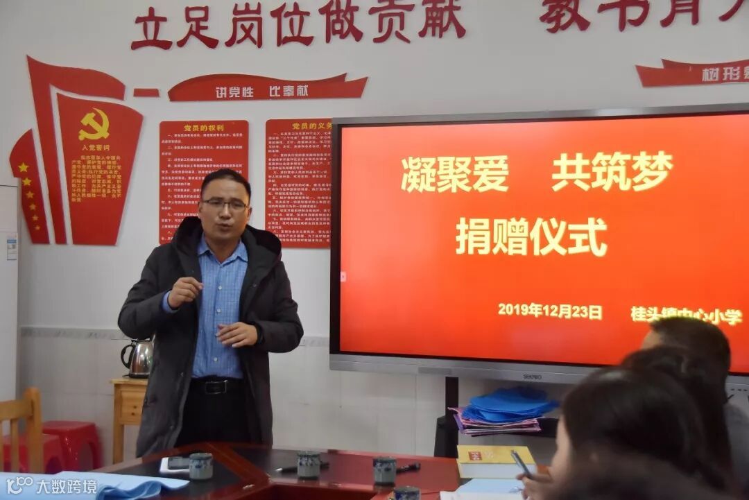 当日下午,捐资助学仪式在桂头镇中心小学党员室举行,桂头镇中心小学校长毛振芬,副校长黄辉、谭文华,五七干校子弟、桂头镇中心小学校友代表等一同参加。