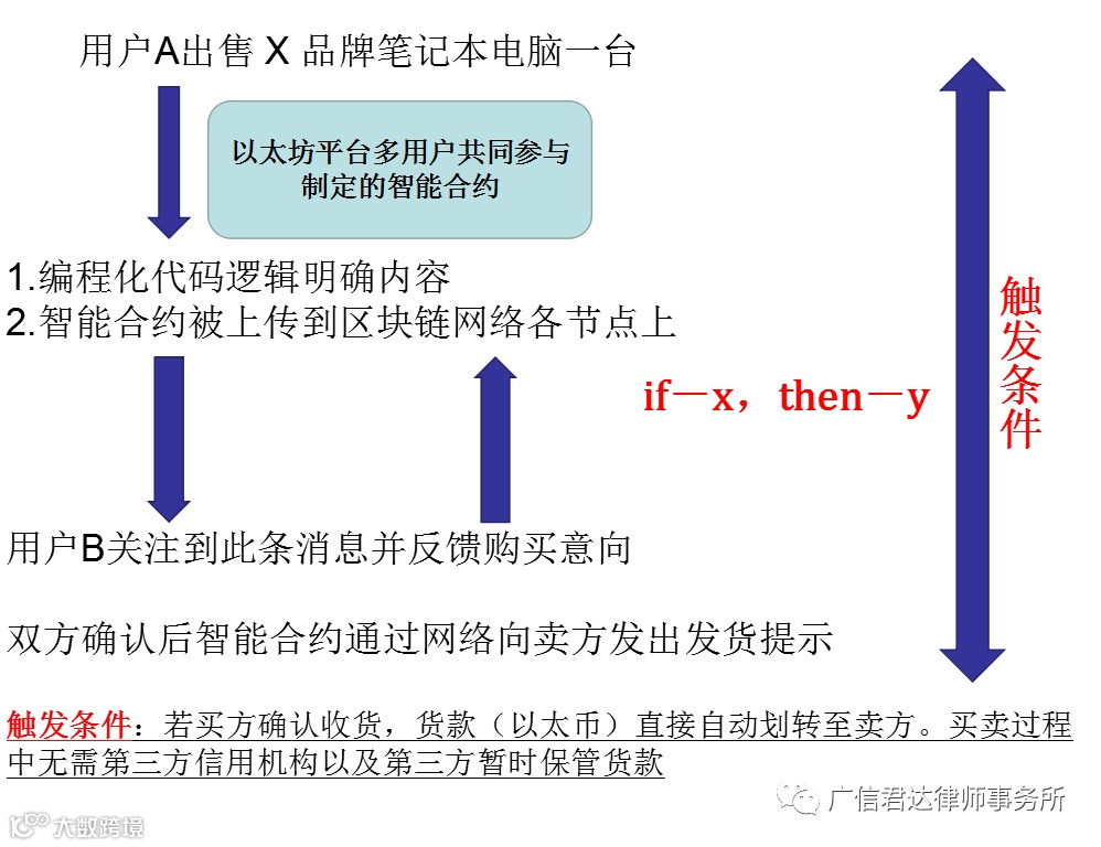 由此,可以看出:智能合约的出现使得基于区块链的双方不仅可进行简单价值转移,还能设定复杂但有系统的规则,由智能合约自动、自治地执行,在区块链框架下不断扩展其应用可能性。在新的时代背景下,区块链技术下的智能合约是合同关系表现形式的全新探索。