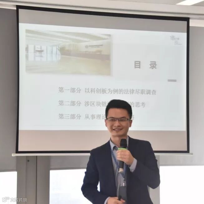 之后,青年律师代表官招阳带来“非诉讼法律实务与理论研究分享”主题讲座,以科创板为例,为大家详细介绍法律尽职调查实务操作,并分享自己从事理论研究的写作经验。官律师还为大家分享其对涉区块链法律问题的一些思考,引起与会人员高度关注。