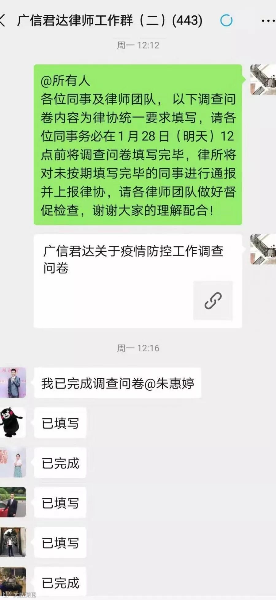 加强疫情舆论监控,向全所员工反复重申和强调严禁转发、散布任何虚假不实信息的有关要求。