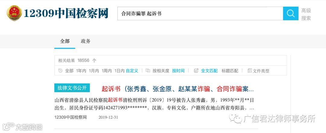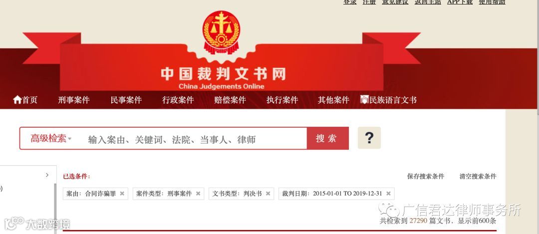 而在中国裁判文书网检索并统计发现,同时期的合同诈骗罪案件在进入法院阶段后,共有27290份判决书,其中无罪判决有160份,无罪判决率为0.59%。