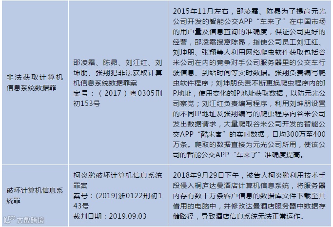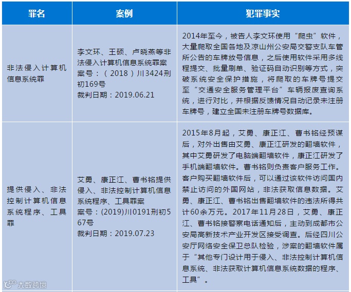 为了让大家更好理解上述不同场景下数据爬虫可能涉及刑事责任风险,我们搜集了一些典型案例,供参考。