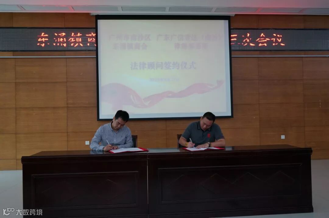会上,东涌商会代表郭华升会长、广信君达南沙分所代表曾建新律师正式签署常年法律顾问聘用合同。