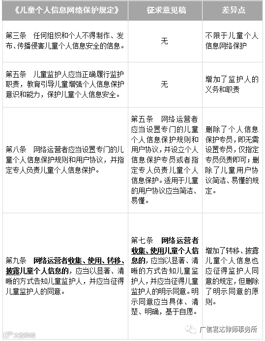 《儿童个人信息网络保护规定》和征求意见稿相比有何变化?