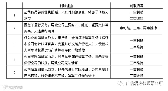 需要注意的是,就《解释二》第18条第2款的具体规定来看,怠于清算致使公司无法清算的情形是否认公司法人人格适用的主要理由,但司法实践中还是出现了部分案件按照如下理由判决的情况::1、清算义务人怠于履行清算义务但未能造成清算不能的后果;2、怠于清算且恶意处置公司财产;3、瑕疵出资行为;4、人格混同。当然,人格混同作为一般性人格否认的理由在司法实践中普遍适用,公司清算中以人格混同为由适用人格否认制度也只是对该制度的必要延伸。