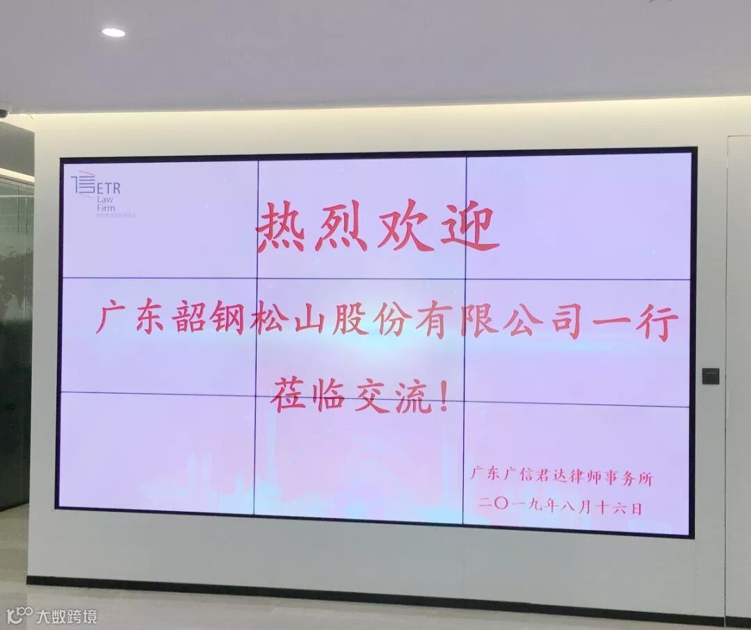近日,中国宝武钢铁集团有限公司下属上市公司广东韶钢松山股份有限公司(简称“韶钢松山”)包锋副部长一行莅临广东广信君达律师事务所调研交流,受到本所陈伟雄律师团队、蒋修贤律师团队的热情接待。