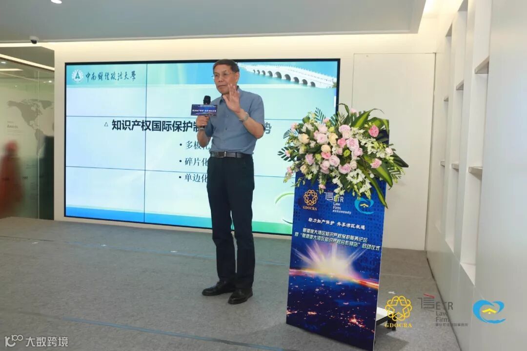 2019年9月11日,由广东省市场监督管理局(知识产权局)为指导单位,广东广信君达律师事务所联合广东省侨界海归协会共同举办的粤港澳大湾区知识产权保护服务论坛暨“粤港澳大湾区知识产权合作驿站”启动仪式上,全国知识产权专家、中南财经政法大学原校长吴汉东教授担任主讲嘉宾作“国际贸易体制与中国创新发展中知识产权制度”主题演讲,受到大家高度赞赏。
