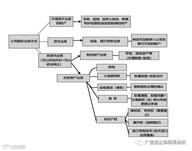 [3]股东可以用货币出资,也可以用实物、知识产权、土地使用权等可以用货币估价并可以依法转让的非货币财产作价出资;但是,法律、行政法规规定不得作为出资的财产除外。