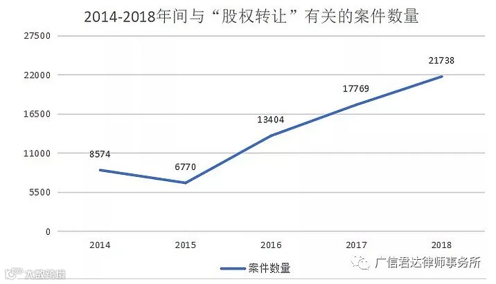 将2014年作为时间起点,主要是因为2013年修订的《公司法》全面实行资本认缴制,标志着我国公司资本制度取得重大突破。2014年3月1日修订后的《公司法》实施,此后的五年间,关于股权转让的案件呈现出明显的上升趋势。