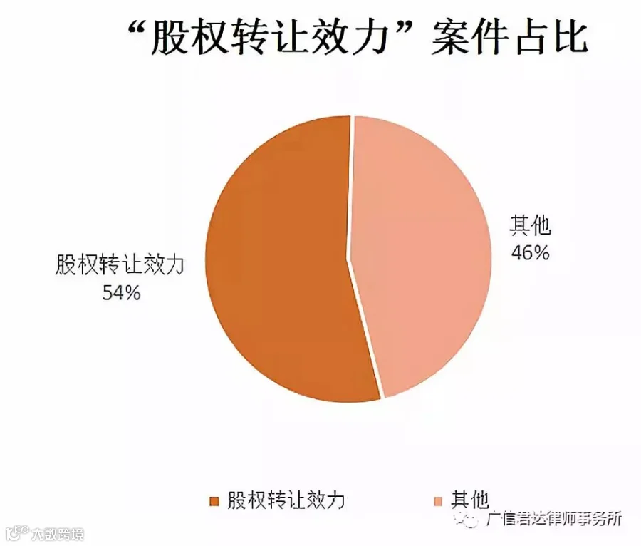 在“股权转让纠纷”案由下,与股权转让效力有关的案件占比如图:
