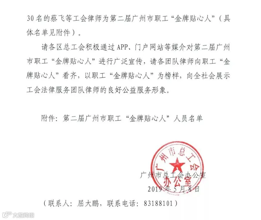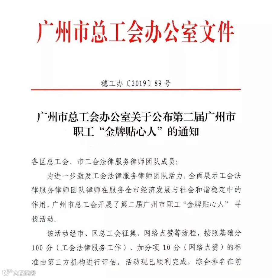 以下为本所律师获评第二届广州市职工“金牌贴心人”名单(排名不分先后):