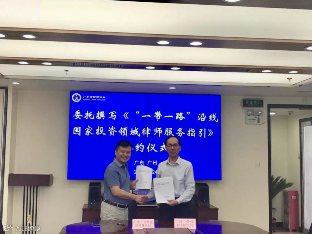 2018年12月,广东广信君达律师事务所高级合伙人慕亚平律师团队承接的广东省律师协会与广东省“一带一路”法律服务研究中心委托的《中国企业赴“一带一路”沿线国投资律师服务指引》(简称“《指引》”)顺利结项,已向省律协提交了项目成果。该《指引》是该团队继2017年完成《一带一路律师服务指引》的又一项目。