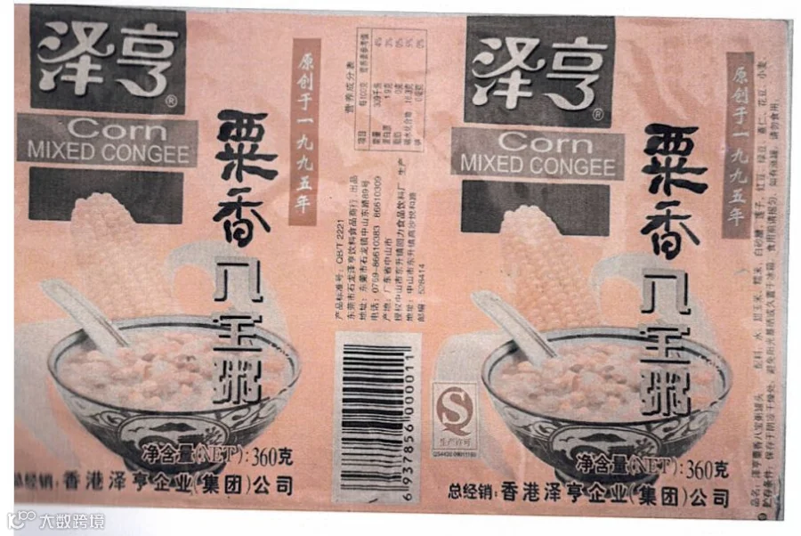 图为被诉侵权的泽亨“粟香八宝粥”包装装潢