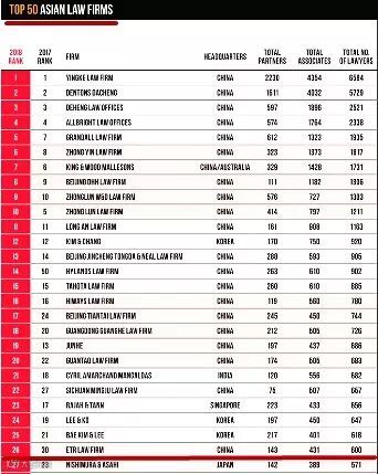 排名亚洲律所第26位