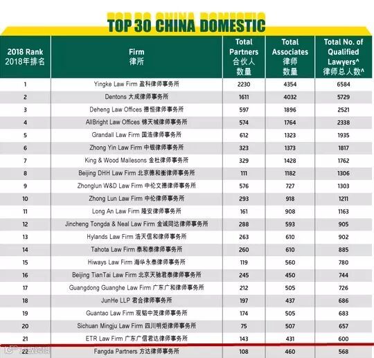 排名中国律所第21位