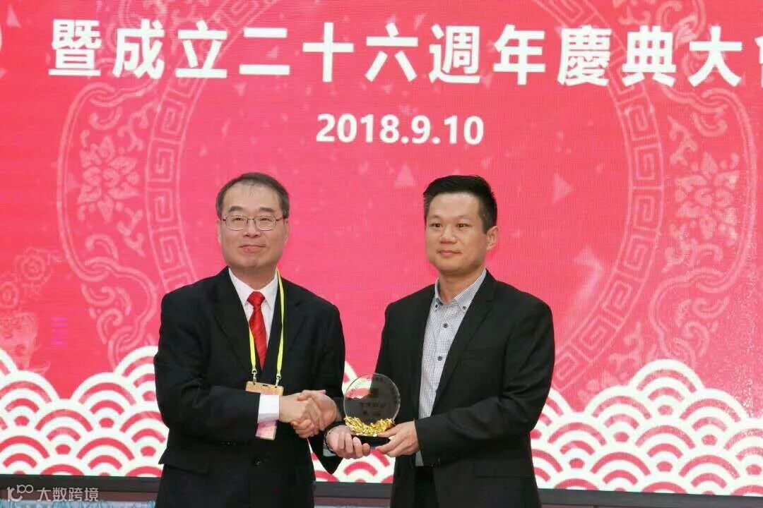 广州市台资企业协会白云分会会长徐光志(左)为朱滔律师颁发法律顾问牌匾