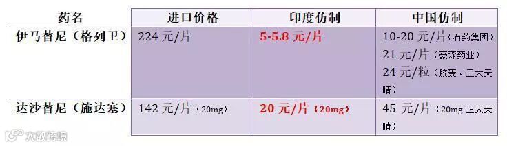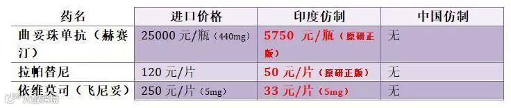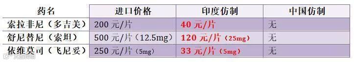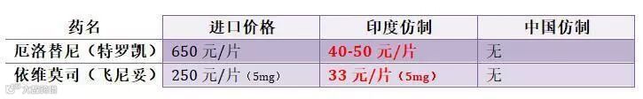 我们不妨通过下面的资料,比较下中国和印度在抗癌靶向药物的仿制情形。