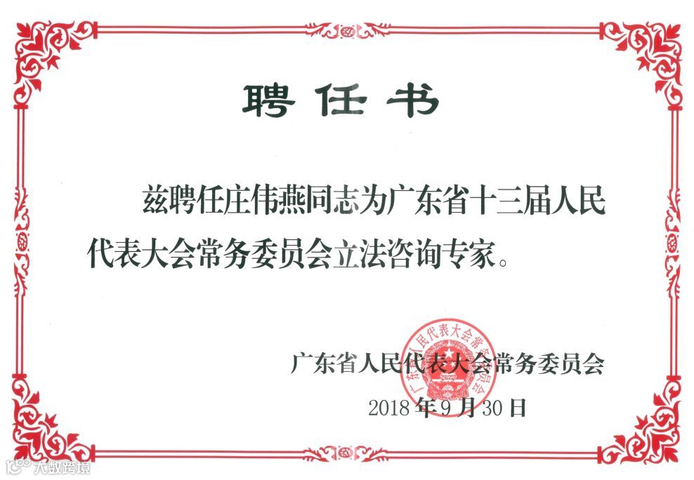 其中,庄伟燕律师已连续四届获聘为广东省人大常委会立法顾问、立法咨询专家。广信君达律师将不忘初心,不辱使命,充分发挥专业特长,勤勉尽责履行立法咨询专家职责,坚持以人民为中心,为推进我省的立法工作提供专业支撑和智力支持!