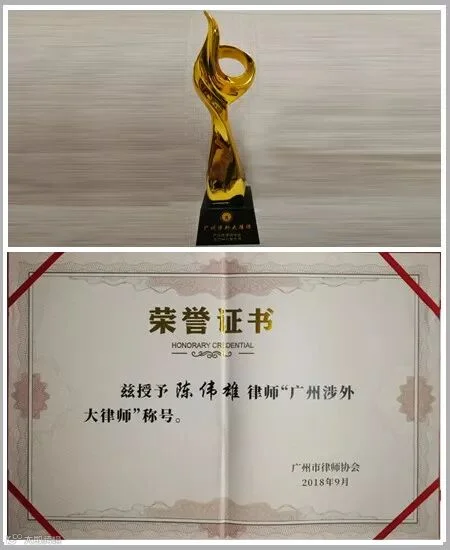 2018年9月8日晚,中国(广州)律师文化节闭幕式在广州中山纪念堂隆重举行,近千人参加闭幕式。闭幕式举行了“广州市涉外大律师”颁奖仪式,广东广信君达律师事务所高级合伙人陈伟雄律师荣获“广州市涉外大律师”称号。
