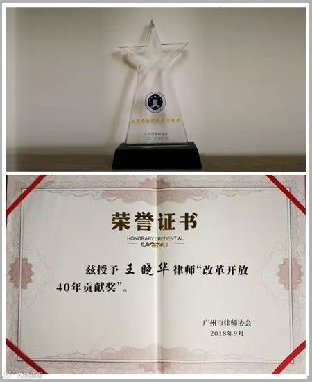 2018年9月8日晚,中国(广州)律师文化节闭幕式,在广州中山纪念堂隆重举行。闭幕式举行了广州市律师协会成立三十周年“改革开放40年贡献奖”颁奖仪式,广东广信君达律师事务所王晓华律师获得殊荣!