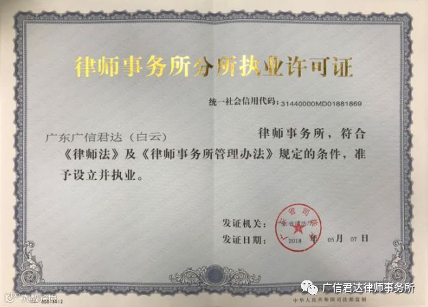 2018年5月7日,经广东省司法厅批准,广东广信君达(白云)律师事务所(简称“广信君达白云分所”)依法设立,成为广信君达设立的第9家分所,负责人为广信君达总部合伙人李万秋律师。