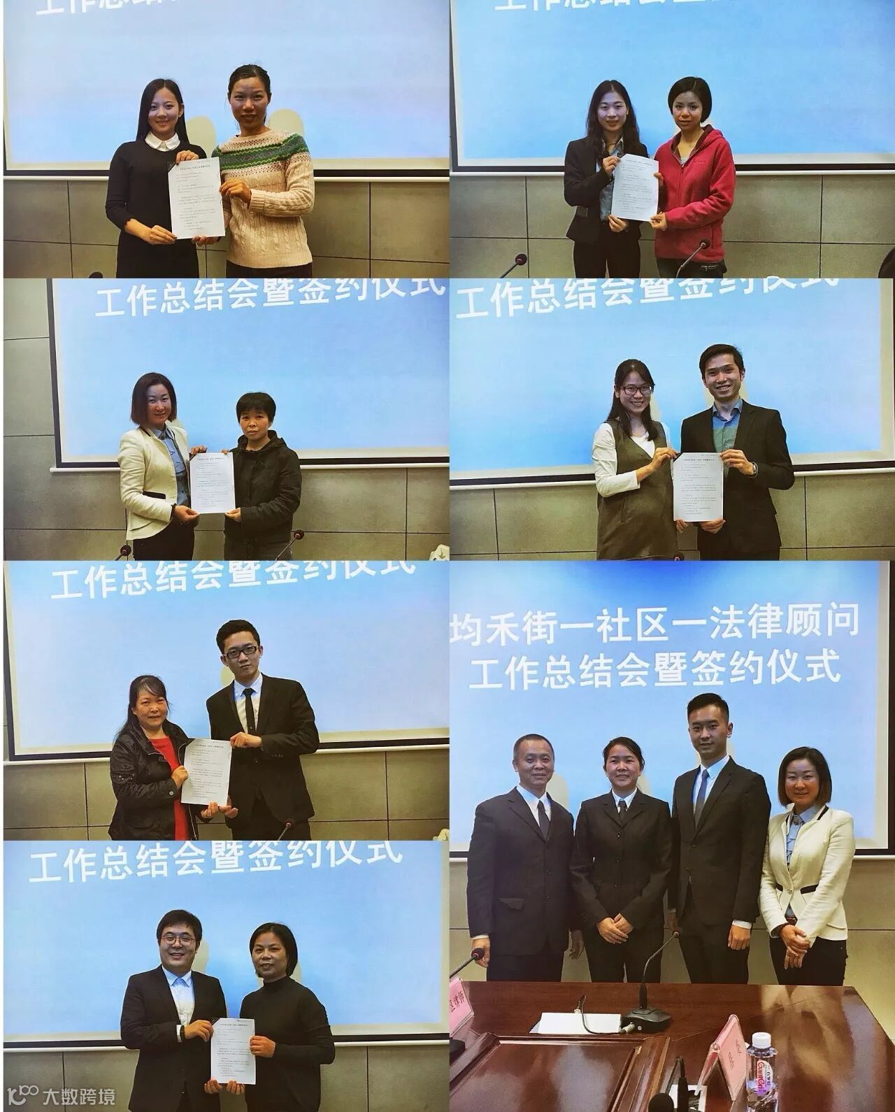 2017年11月28日下午,广东广信君达律师事务所张哲、杜剑慧等十位律师与广州市白云区均禾街道十个社区在均禾司法所续签了2018年度常年法律顾问合同,全面落实“一村(社区)一法律顾问”工作。